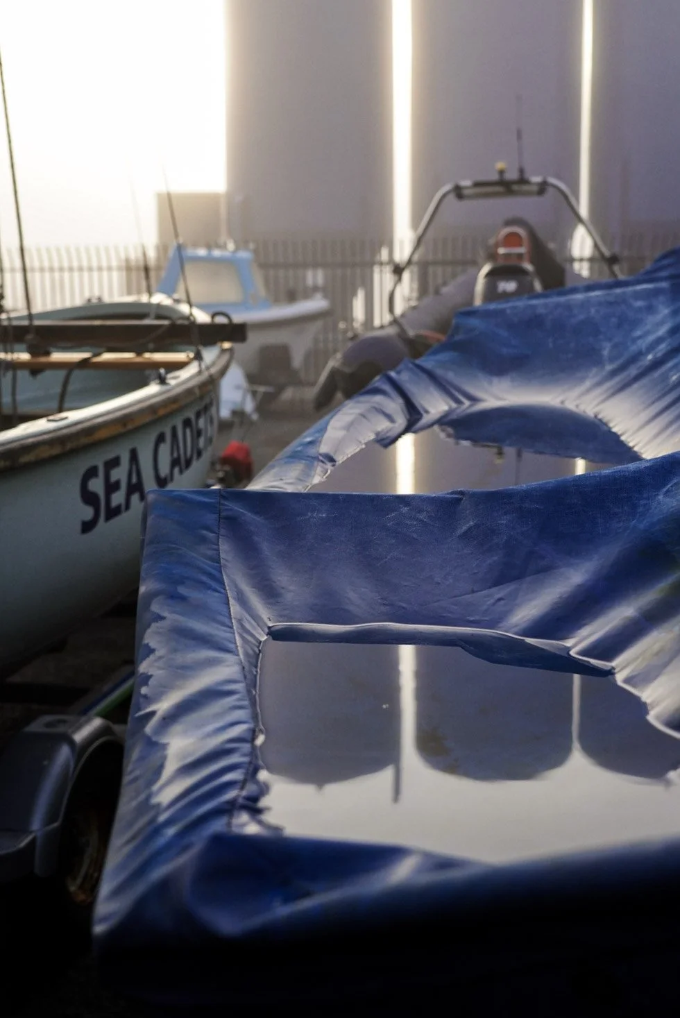 I wanted to capture it’s harsh light that is created when a haar comes in from the cold North Sea in winter. It engulfs the sky and leaves this ethereal looking glow amongst the harbour infrastructure.